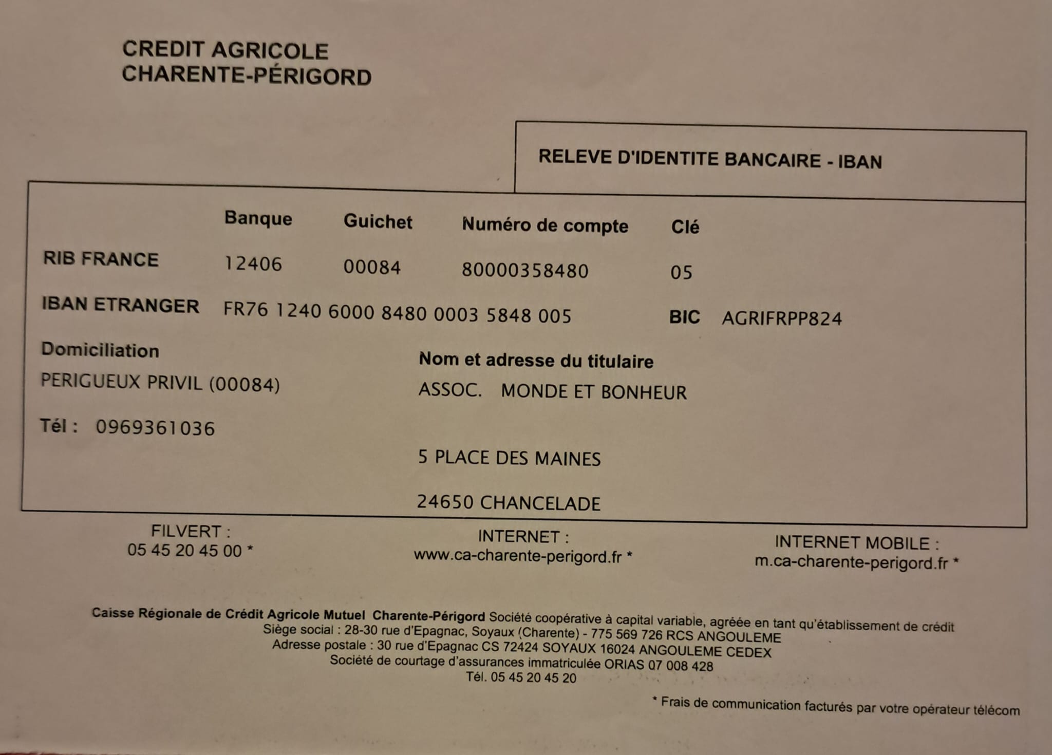Credit Agricole, Releve d'identite bancaire - IBAN